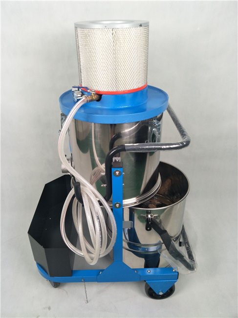 產(chǎn)品特點(diǎn): 無須電源,以壓縮空氣為動(dòng)力,有壓縮空氣的場所可替代電動(dòng)吸塵機(jī);氣動(dòng)吸塵器能夠吸塵、吸水吸油、吸鐵屑,吸粉末,弱酸堿等易燃易爆等多種物體和液體,是一種萬能的消音型吸塵器。因?yàn)轵?qū)動(dòng)源是壓縮機(jī)的壓縮空氣,所以能夠連續(xù)運(yùn)轉(zhuǎn):無運(yùn)轉(zhuǎn)部件,可持續(xù)長時(shí)間工作,設(shè)備無需過多維護(hù);噪音小,吸力強(qiáng)勁??膳c生產(chǎn)線或生產(chǎn)設(shè)備配套使用;不銹鋼桶身,堅(jiān)固耐用;廣泛用于清理金屬打磨、拋光、切割時(shí)產(chǎn)生的金屬碎屑及粉末;清理化工行業(yè)灌裝液體時(shí)溢出的化學(xué)液體;清理機(jī)床、加工中心產(chǎn)生的鐵屑及油;清理紡織、塑膠行業(yè)加工時(shí)產(chǎn)生的毛屑、塑料碎屑等物質(zhì)。高性能過濾,過濾效果達(dá)到99.99%以上,粉塵直徑可達(dá)到0.3-0.5um ;全天候的工作,適用于高溫或潮濕的工作環(huán)境 。